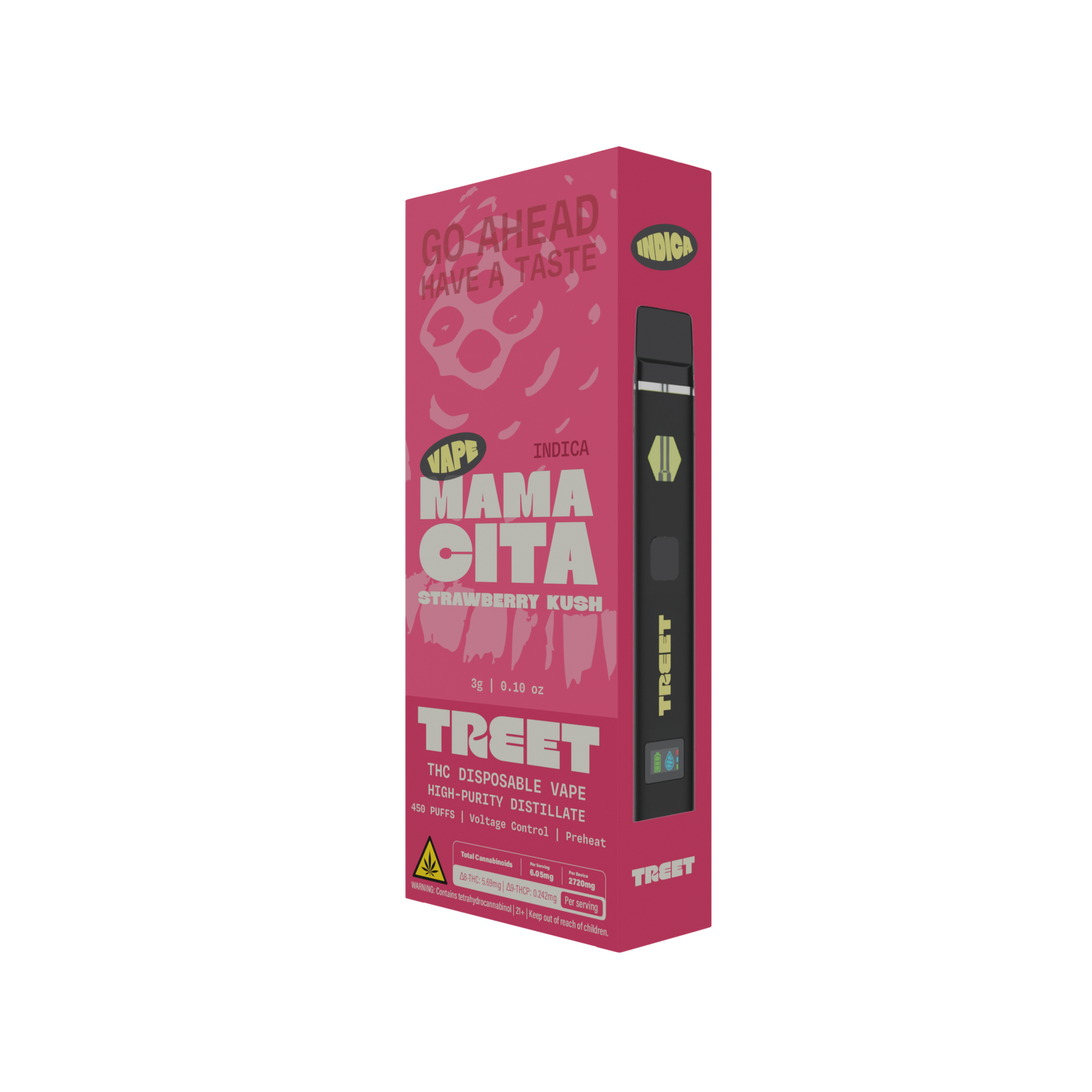 Our vapes are filled with a premium, dual-extracted THC concentrate that combines the best of both worlds: the natural, full-spectrum qualities of solventless Delta-8 rosin and the refined, high-potency attributes of Delta-8 resin. Fortified with THCP diamonds for an added kick. You’re in for a Treet.