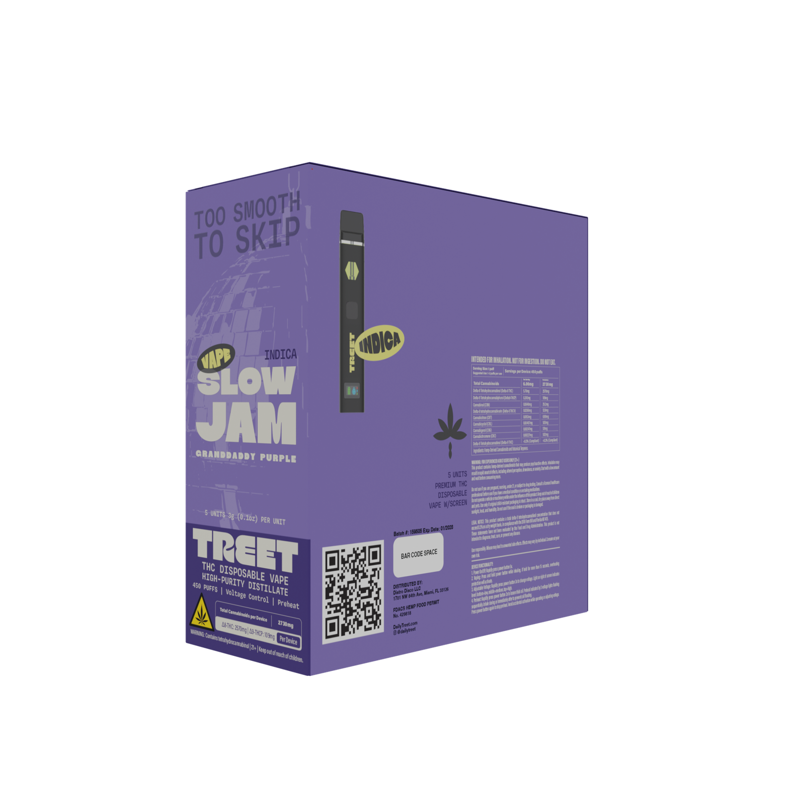 Take a break with Slowjam, a 3mL disposable featuring a potent 74.19% Delta-8 THC concentration. This high-quality concentrate is perfect for those seeking relaxation and a balanced euphoria in a compact, easy-to-use format.