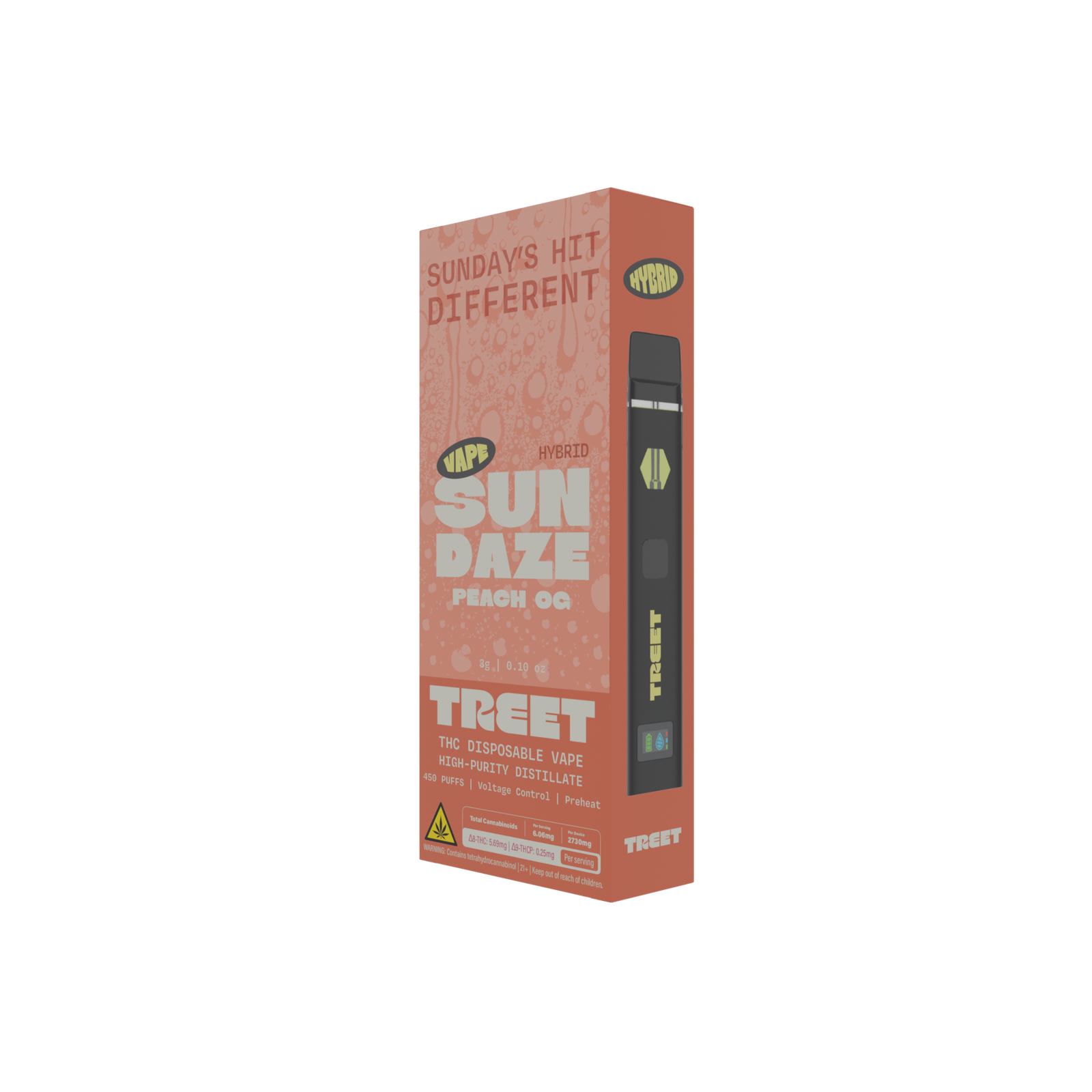 Our vapes are filled with a premium, dual-extracted THC concentrate that combines the best of both worlds: the natural, full-spectrum qualities of solventless Delta-8 rosin and the refined, high-potency attributes of Delta-8 resin. Fortified with THCP diamonds for an added kick. You’re in for a Treet.